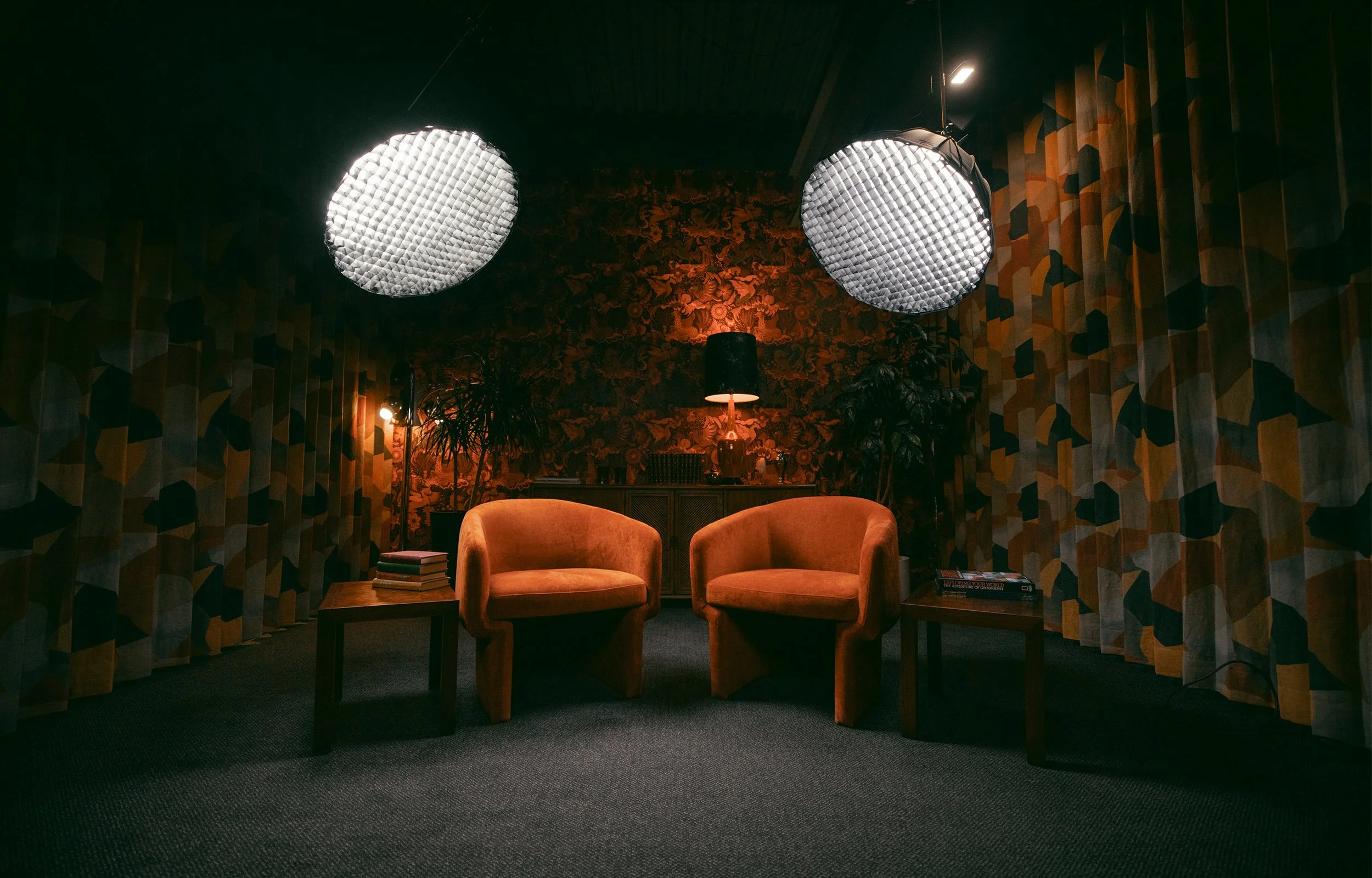 Cameras, lighting, and audio fully set and ready